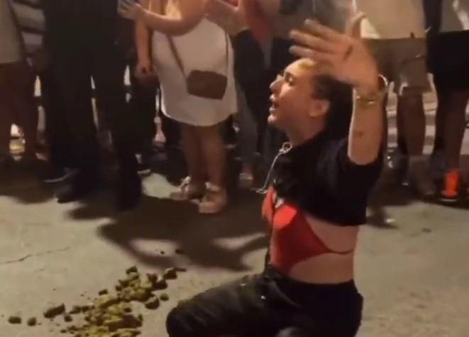 Na užasavajućim snimcima koji se brzinom munje šire društvenim mrežama vidi se devojka koja je legla u konjski izmet, a zatim počela da se valja po njemu i da ga razmazuje po licu i telu. Šokirani prolaznici snimali su bizarnu scenu svojim telefonima.