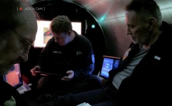 Vidi se kako Grifit, sa zabrinutošću, mahnito radi na kompjuteru pre nego što je pitao posadu, koja je gledala kroz jedan otvor na podmornici, da li se okreće, na šta je ona odgovorila potvrdno, piše Dejli mejl.