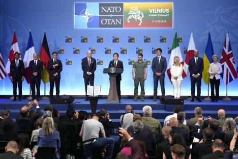 Rojters prenosi sa u deklaraciji objavljenoj na samitu NATO, kojoj mogu da se pridruže druge zemlje, piše da SAD, Nemačka, Japan, Francuska, Kanada, Italija i Velika Britanija, kao i Evropska unija, poručuju da ovaj okvir obuhvata elementi kao što su moderna napredna vojna oprema, obuka, razmena obaveštajnih podataka i odbrana od sajber napada.