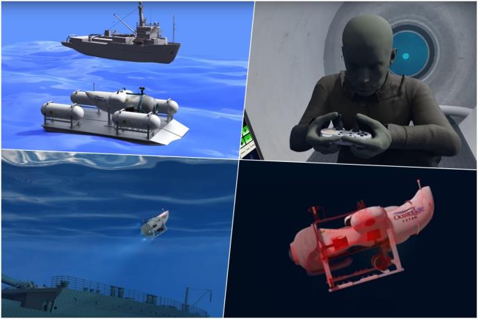Tu se vidi kako se podmornica u vlasništvu kompanije "Oušngejt", koja je suvlasnika i četvoro putnika trebalo da odvede u obilazak olupine "Titanika", raspala zbog ogromnog podvodnog pritiska.