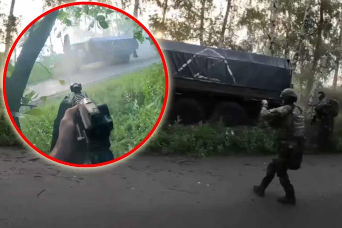 Na snimku se vidi grupa diverzanata koja iz šume otvara vatru na jedan kamion ruske vojske. Jedan od diverzanata potom je prišao do kabine teretnjaka i ispalio rafal u vozača iz neposredne blizine.