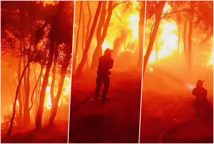 Meteorološka služba Grčke postavila je na Fejsbuk snimak koji pokazuje svu opasnost u kojoj se nalaze koji pokušavaju da obuzdaju požar.