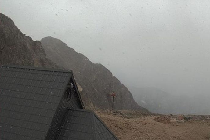Na Fejsbuk stranici slovenačke Agencije za zaštitu životne sredine (ARSO) objavljena je fotografija sa planinskog vrha Kredarica na kojoj se vidi kako tamo provejavaju snežne pahuljice.