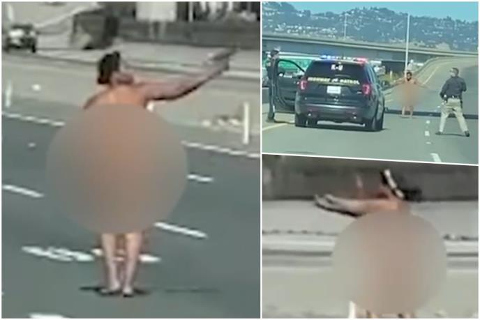 Gola žena izazvala je paniku na prometnom mostu koji povezuje kalifornijske gradove San Francisko i Ouklend, pošto je izašla iz automobila i počela da puca na vozila koja su joj išla u susret.