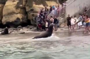 Na snimku se vidi kako posetioci plaže beže od velikih životinja koje se približavaju. Lokalni mediji navode da se incident dogodio u nedelju uveče kad su turisti preplavili jednu od najpoznatijih plaža u Kaliforniji pokušavajući da izbliza dobiju fotografije sa morskim lavovima.