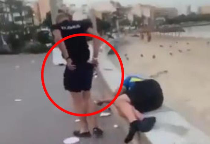 Na degutantnom snimku vidi se mladić iz Holandije koji je pijan, ali dovoljno priseban da hoda kako nailazi na drugog čoveka koji je spavao na plaži u Palma de Majorci. Umesto da ga probudi ili jednostavno prođe pored njega Holanđanin je odlučio da obavi nuždu na njegovom licu.
