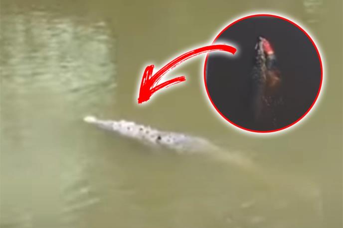 Na užasavajućim snimcima vidi se kako krokodil vuče telo žrtve. Na drugom snimku se vidi kako ga meštani prate čamcem pre nego što će ga policija ubiti i izneti telo žrtve na obalu reke.