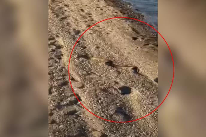 Velika zmija izašla je iz mora i poprilično preplašila kupače na jednoj plaži na Eviji.