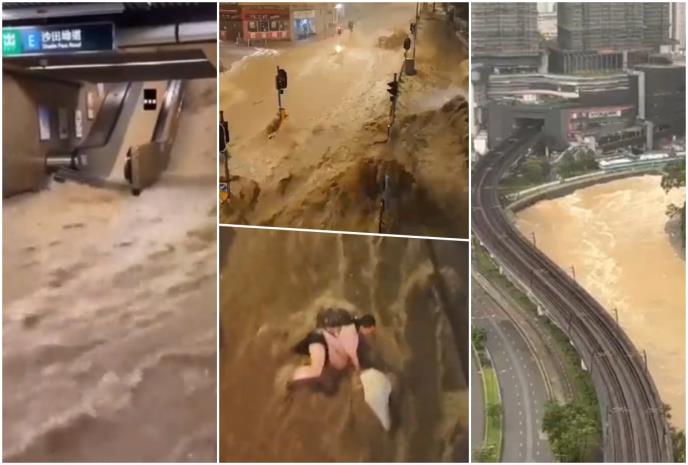 Obilne padavine prouzrokovale su velike poplave u Hong Kongu, a u ovom gusto naseljenom gradu, pod vodom su ulice, trgovački centri i stanice podzemne železnice.