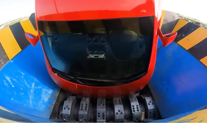 Crveni "Lamborgini Galjardo Superleđero" završio je u industrijskoj hidrauličnoj presi i potpuno je uništen i smrvljen.