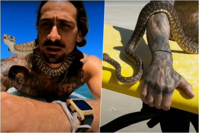 Australijski surfer Hajgor Fijuza moraće da platu novčanu kaznu u protivrednosti od 1.400 evra jer je viđen na dasci kako se bori sa talasima sa pitonom oko vrata.