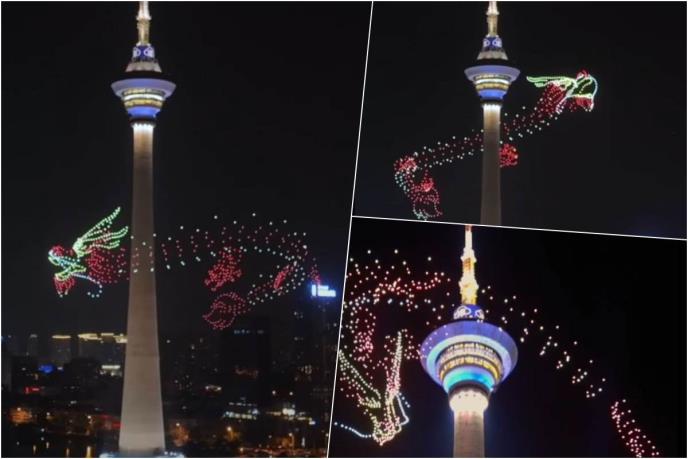 Navodi se da je ovaj "zmaj" načinjen od skoro 1.000 dronova.