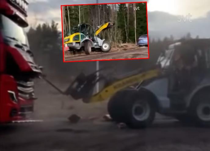 Muškarac iz Švedske upalio je viljuškar i napravio krš i lom nakon što su se policija i državni izvršitelji pojavili na njegovom imanju.