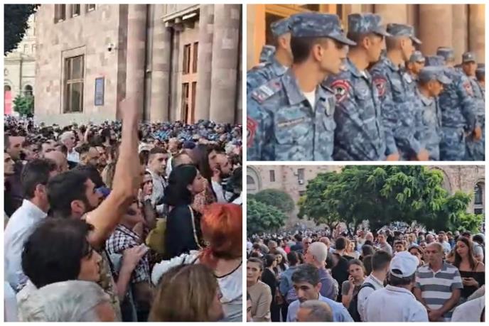 Napetost na centralnom trgu u Jerevanu raste, i okupljeni traže da premijer Jermenije Nikol Pašinjan podnese ostavku. Demonstranti takođe policajce gađaju flašama.
