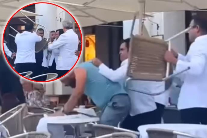 Tuča je navodno počela nakon što je nekoliko konobara odgurnulo mušteriju nakon verbalne svađe. Mušterije su tada uzvratile i gurnule konobare nakon čega je došlo do velike tuče.