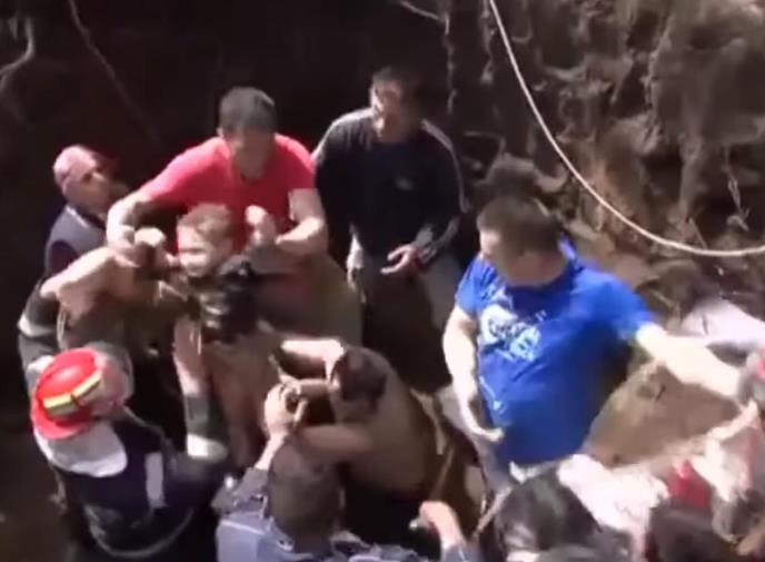 Nakon nekoliko trenutaka, vatrogasci i meštani su povukli uže nakon verovatnog signala iz rupe. Nekoliko trenutaka je trajala neizvesnost, a onda se mršavi dečak pojavio sa trogodišnjakom kojeg je uspeo da izvuče iz rupe.