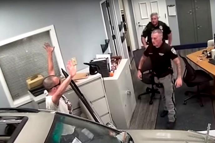 Muškarac, 34-godišnji Džon G. Hargrivs, priveden je nakon što se vozio kroz predvorje policijske stanice u terencu. Na sreću, ni u jednoj nezgodi nije bilo povređenih.