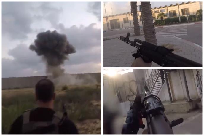Na video materijalu snimljenom iz prvog lica, vidi se eksplozija na Erezu, a potom i juriš pripadnika Hamasa uz povike "Alahu Akbar".