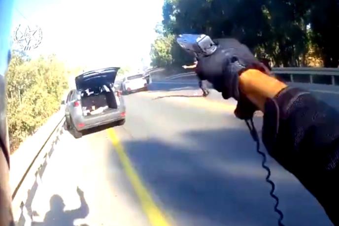 Novi snimak koji je objavljen na društvenim mrežama prikazuje izraelskog policajca na motociklu koji juri za vozilom u kom se navodno nalazi pripadnik Hamasa.