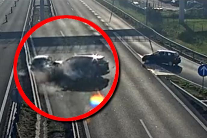 JEZIVI SNIMAK NESREĆE NA AUTO-PUTU, AUTO SE OKRETAO OD SILINE UDARA: Krenula u suprotnom smeru, u punoj brzini naleteo džip