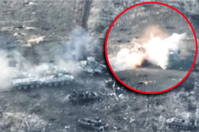 Na snimku izviđačkog drona vidi se trenutak napada na nekoliko ruskih vozila. Vidi se da su napadi bili praćeni i sekundarnim eksplozijama.