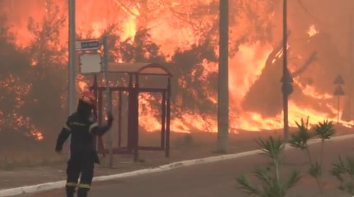 Požar je izbio u šumskoj oblasti između sela Ajos Stefanos i Avliotes, u blizini stambenog naselja, dok je duvao jak vetar, saopšteno je iz grčke vatrogasne službe.