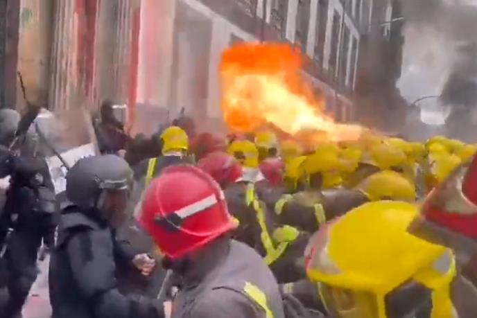 VATROGASCI NAPALI POLICIJU, KRV PALA TOKOM PROTESTA: Pogledajte scene haosa u Španiji, koristili VATRU KAO ORUŽJE (VIDEO)