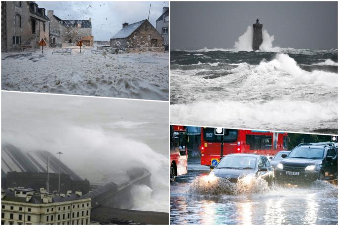 Snažni vetrovi brzine do 160 kilometara na čas i obilna kiša su zabeleženi u južnoj Engleskoj, dok je u Francuskoj najore pogođeno područje Finistera na severozapadu zemlje gde su Puan-di-Razu udari vetra išli i do 205 kilometara na čas.