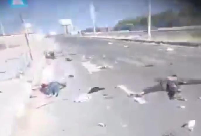 Na snimku se vide i mnogi lični predmeti razbacani među telima. Među žrtvama je najmanje jedno dete dok su na putu mrlje od krvi.