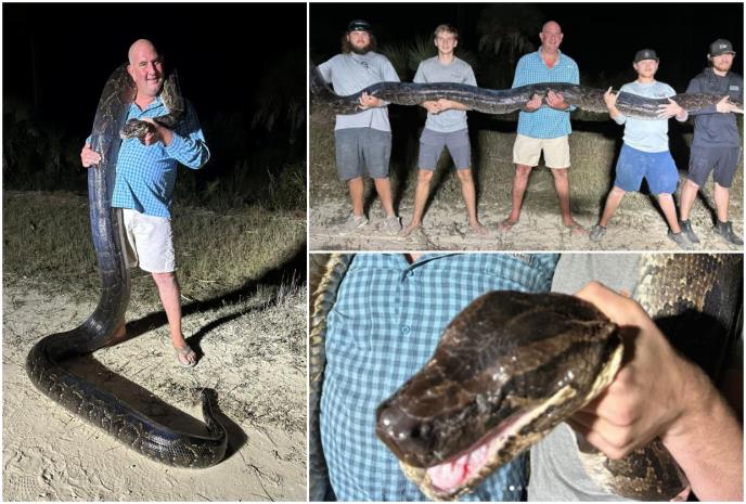 Grupa lovaca na pitone ušla je u istoriju nakon što je na Floridi uhvatila pitona dugog više od pet metara i teškog skoro 90 kilograma.