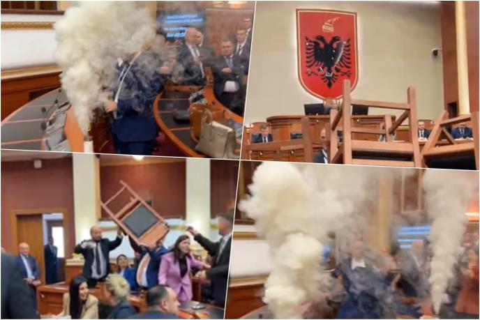 NOVI CIRKUS U PARLAMENTU ALBANIJE: Poslanici nabacali stolice ispred govornice, aktivirane dimne bombe, snimak meteža obilazi svet