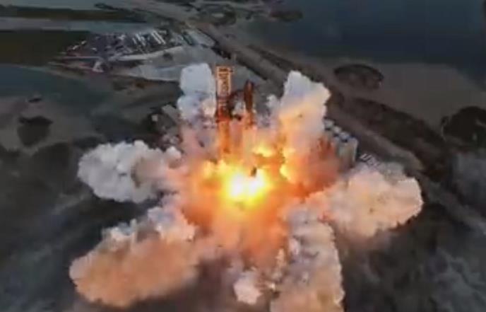 Debi "Staršipa" bio je zakazan 20. aprila, a raketa je uspela da se odvoji od tla u 8.30 časova po lokalnom vremenu. Odmah je, međutim, bilo jasno da se neki od 33 motora nisu upalili, a kako je nastavila da se penje sve više motora je otkazivalo.