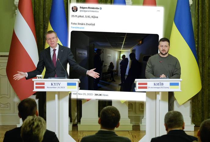 Letonski predsednik Edgars Rinkevičs morao je da se skloni u bunker juče u zoru tokom ogromnog napada ruskih dronova-kamikaza na Kijev.