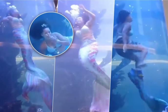 Posetioci su zabeležili šokantan trenutak kad je devojka u kostimu sirene počela da se bori za dah.