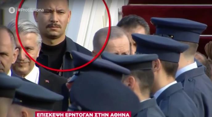 Kako prenose grčki mediji, tu je bio telohranitelj visok dva metra koji nije skidao pogled sa turskog predsednika od prvog trenutka kada se iskrcao na aerodorm "Elefterios Venizelos".