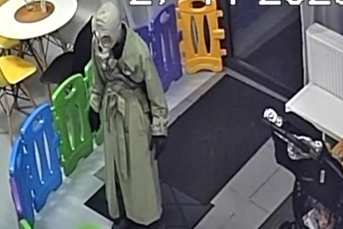 Deca koja su se igrala u jednoj igraonici u gradu Zabki u Poljskoj preplašena su kada je misteriozni muškarac, koji je na licu nosio gas masku, ušao među njih i pokazao prstom da "ćute".