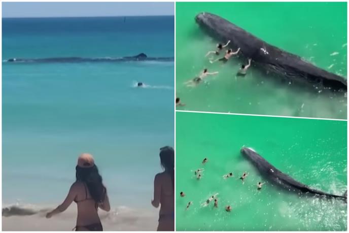 Životinja teška 30 tona nakon susreta s kupačima vratila se u dublje vode, ali su stručnjaci za divlje životinje upozorili na opasnost od nasukavanja i da bi bilo kakva interakcija s ulješurom mogla da bude opasna.