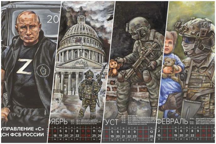 Mišićavi Vladimir Putin glavna je zvezda ilustrovanog kalendara za 2024. koji prodaje organizacija za pomoć veteranima Federalne službe bezbednosti (FSB) Rusije.