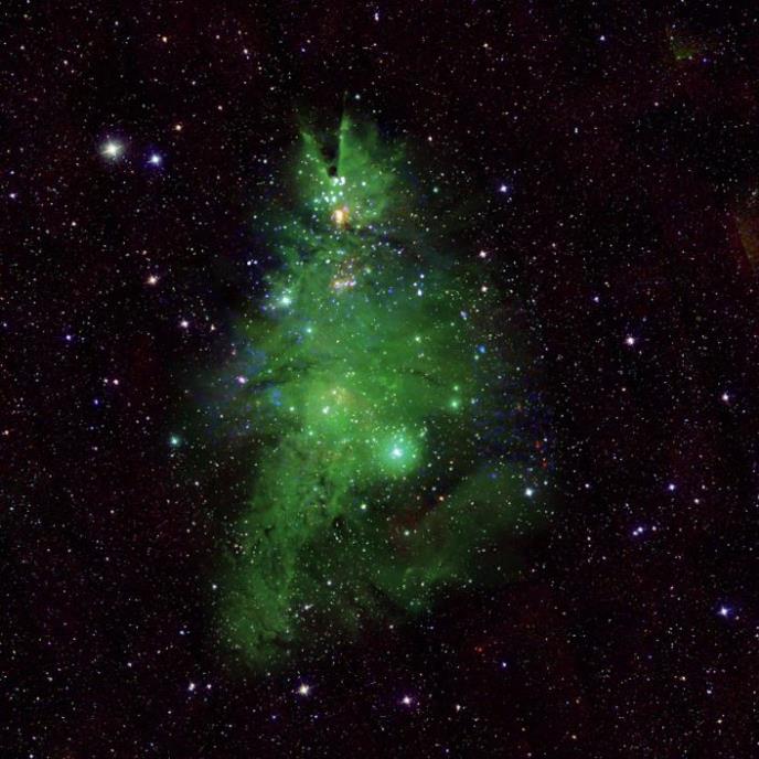 Kompozitna fotografija, koju je snimio NASA svemirski teleskop "Chandra", prikazuje najnoviji pogled na NGC 2264, kosmički fenomen poznat i pod nazivom "jato novogodišnja jelka". Radi se o skupu mladih zvezda unutar naše galaksije koje su stare između jedne i pet miliona godina. Ove zvezde su udaljene od nas oko 2500 svetlosnih godina. Neke su veće, a neke manje od Sunca.