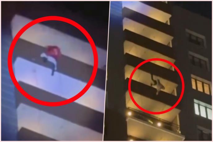 Neidentifikovani penjač pokušavao je da se spusti niz stranu stambene zgrade od 24 sprata u Čeljabinsku u Rusiji kako bi oduševio gomilu ispod kada je izgubio ravnotežu.