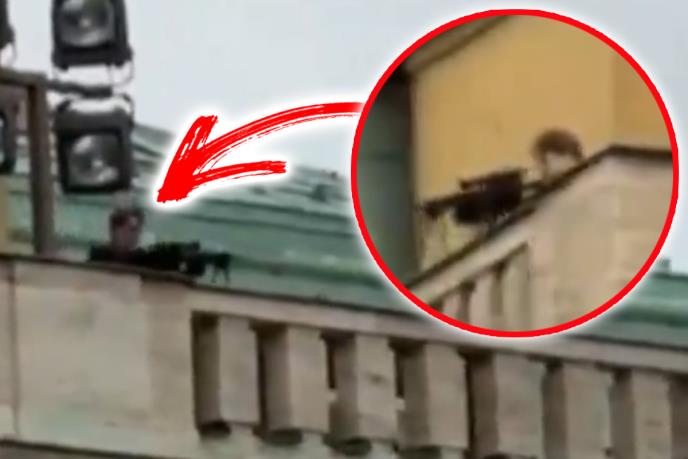 Na drugim snimcima se vidi kako Kozak, obučen u crno, stoji na balkonu i hladnokrvno puca iz moćne puške ZEV-30 puca u studente i turiste.
