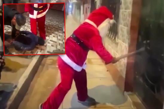 ŠOKANTAN SNIMAK HAPŠENJA: Agent obučen kao Deda Mraz juri dilere narkotika MALJEM RAZVALJUJE VRATA I UPADA U SKLONIŠTE (VIDEO)