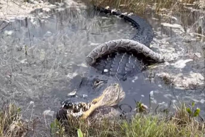 Piton dugačak oko tri metra izvukao je deblji kraj u sukobu sa aligatorom u nacionalnom parku Everglejds na Floridi!