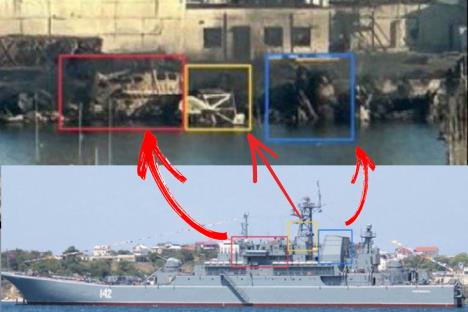 Ubrzo potom objavljeno je i poređenje tih ostataka sa ranijom fotografijom "Novočerkaska", sa raznim bojama uokvirenom istovetnim delovima u varijanti pre i posle.