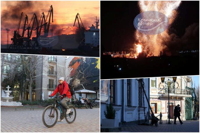 Sajt Kijev indipendent prenosi da su Rusi u tom gradu pojačali mere nadzora nakon napada, a lokalni mediji su objavili da su nakon udara raketa koje su ispalili borbeni avioni ukrajinskog ratnog vazduhoplovstvajoš dva broda napustila luku u Feodosiji.