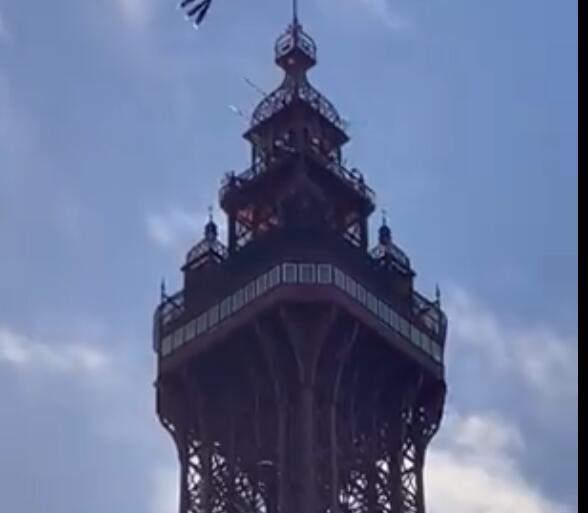 Požar je izbio u Blekpul kuli, a video snimak prikazuje plamen na vrhu kultne strukture.