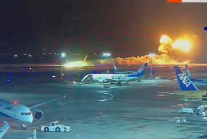 Japanski javni servis NHK objavio je, pozivajući se na lokalne vlasti, da se avion "Japan erlajnsa", koji je planuo prilikom sletanja na aerodrom "Haneda" u Tokiju, možda sudario s drugim avionom.