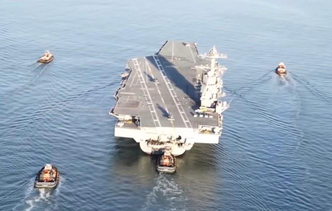 Udarnu grupu čine nosač aviona USS Džerald R. Ford, osam eskadrila aviona za napad i podršku, krstarica vođenih raketa USS Normandija i četiri raketna razarača.