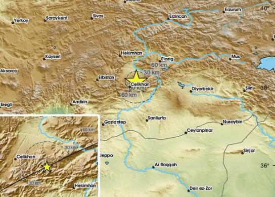 Epicentar potresa bio je na 28 kilometara od Malatije, na dubini od sedam kilometara.