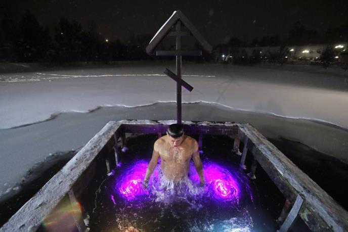 Širom Rusije, vernici slave pravoslavni praznik Bogojavljenja uranjajući u hladnu vodu kroz rupe isečene na ledu jezera i reka.